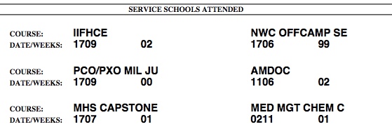 As you can see, my three new service schools are all there, and my record is ready for my O6 board. It took about 3 months in total, and involved a returned envelope and some strange e-mails, but thanks to whoever at NSIPS addressed this issue for me.