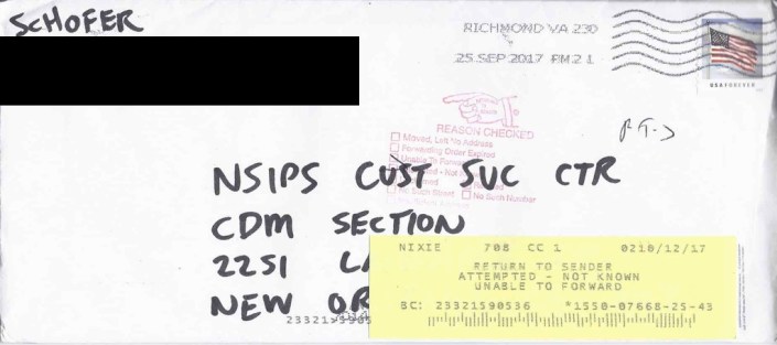 I’m not sure if the address I have is wrong or the USPS just didn’t like my abbreviations, but the snail mail attempt clearly didn’t work.