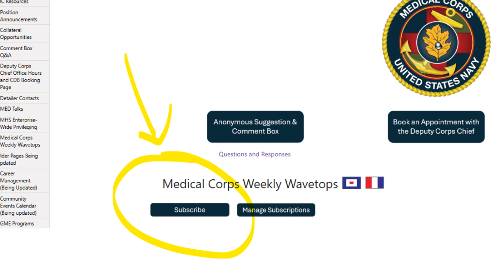 Subscribe to email updates directly from the Medical Corps SharePoint page! Simply click the “Subscribe” button on our SharePoint page to receive these announcements by email directly from the site: